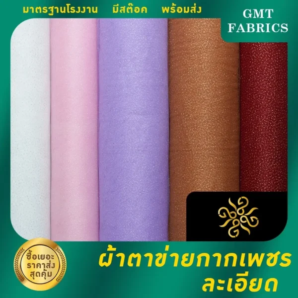 (หน้ากว้าง60นิ้ว) ผ้าตาข่ายเงา มุ้งเงา ร้านขายผ้า GMT FABRICS จำหน่ายผ้าคุณภาพดี มาตรฐานโรงงาน เรามีหน้าร้านเปิดมากว่า 10ปี ทางร้านจัดส่งสินค้าทุกวันจันทร์-เสาร์ ส่งเร็ว ส่งไว มีผ้าให้เลือกกว่า 80ชนิด สำหรับลูกค้าที่ต้องการใช้ผ้าจำนวนเยอะ หรือซื้อยกไม้ มีราคาส่งสุดคุ้ม หากสินค้ามีปัญหา ทางร้านดูแลรับเคลมสินค้าให้ *ตามเงื่อนไขที่ร้านค้ากำหนด หากต้องการข้อมูลผ้าชนิดไหนสอบถามเพิ่มเติมได้ค่ะ ทางร้านยินดีให้บริการค่ะ