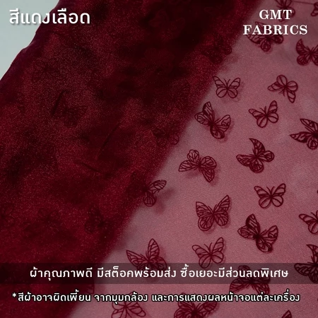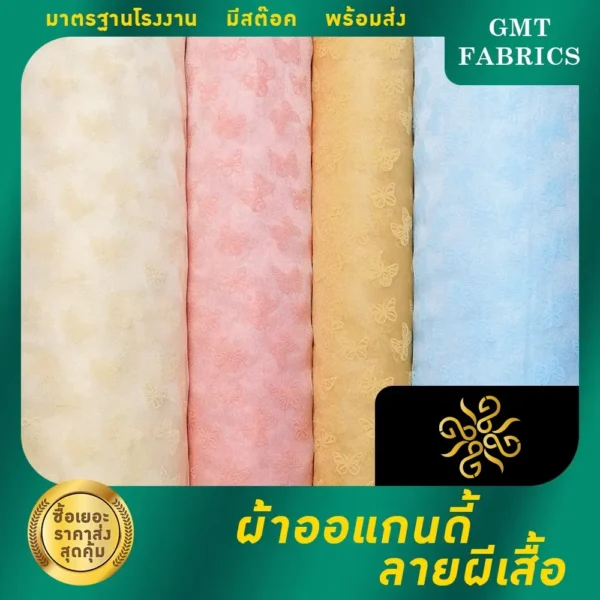 ผ้าออแกนดี้ลายผีเสื้อ ผ้าโปร่ง ผ้าแต่ง (หน้ากว้าง60นิ้ว)