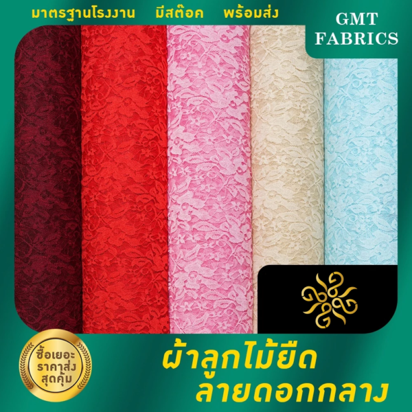 ลูกไม้ยืด (ลายดอกกลาง) ผ้าลูกไม้ยืด(ลายดอกกลาง) หน้ากว้าง 60นิ้ว